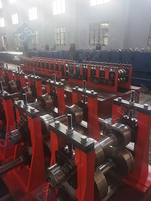 全、半自動C/Z型檁條機(jī)采用同一套設(shè)備通過自動、手動簡單無級調(diào)節(jié)就可生產(chǎn)C/Z型檁條的各種規(guī)格,換規(guī)格時無須更換成型輥。生產(chǎn)過程采用自動控制方式,可根據(jù)輸入的檁條長度、縱向孔距、數(shù)量等參數(shù)進(jìn)行自動沖孔、切斷、成型。
